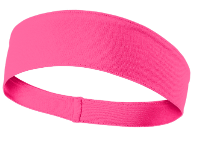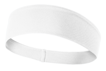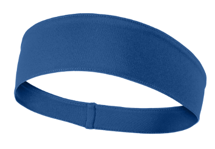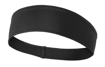 Moisture-wicking headband that narrows in the back to fit more securely.